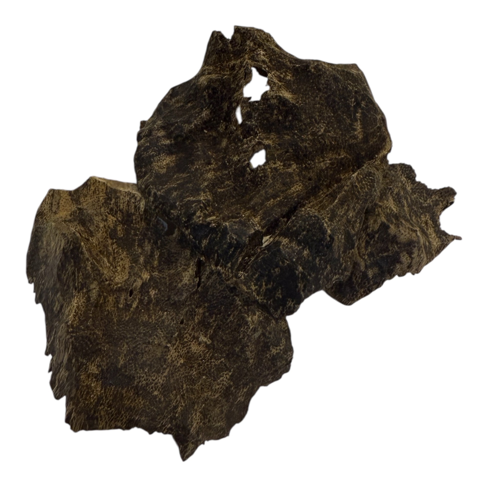 - الشكل: قطعة كبيرة متماسكة فيها ثقوب وتجويفات طبيعية، وهذا دليل على عمر العود الطويل وتشربه بالراتنج.